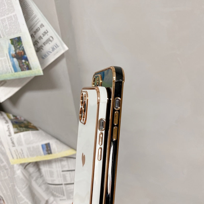 Soft Electroplated Love Heart Phone Case For iPhone 11 12 Pro Max XS X XR 7 8 Plus Mini SE 2020 Shockproof Bumper Back Cover